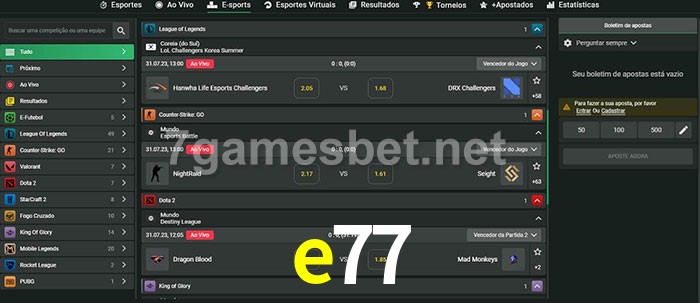 A aposta e77 oferece aos jogadores a experiência mais conveniente de apostas em eSports!